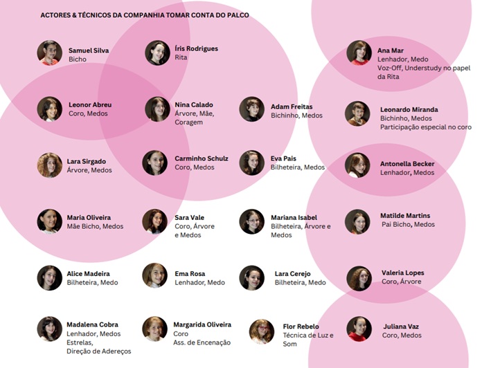 "Tomar Conta do Palco” é mais do que um projeto - é um lugar onde a imaginação cresce com as palavras, a luz e o som. Com 23 crianças e jovens dos 6 aos 18 anos e dois adultos que guiam com coração e saber, esta companhia transforma o teatro numa escola viva de emoções e descobertas. Aqui, cada gesto, cada voz, cada personagem inventada é um passo no caminho do crescimento. Da escrita à encenação, da técnica à estética, tudo serve para construir, no palco e na vida, seres mais inteiros, mais curiosos, mais livres. Porque quando se toma conta do palco, aprende-se também a tomar conta de si e do mundo.